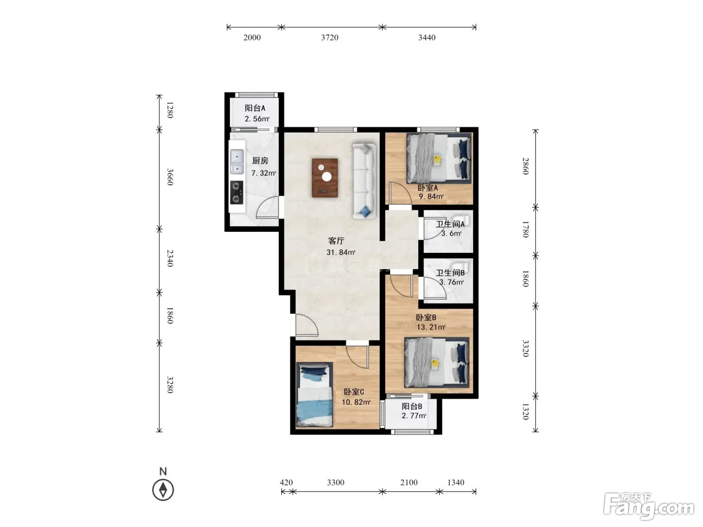 3室1厅2卫