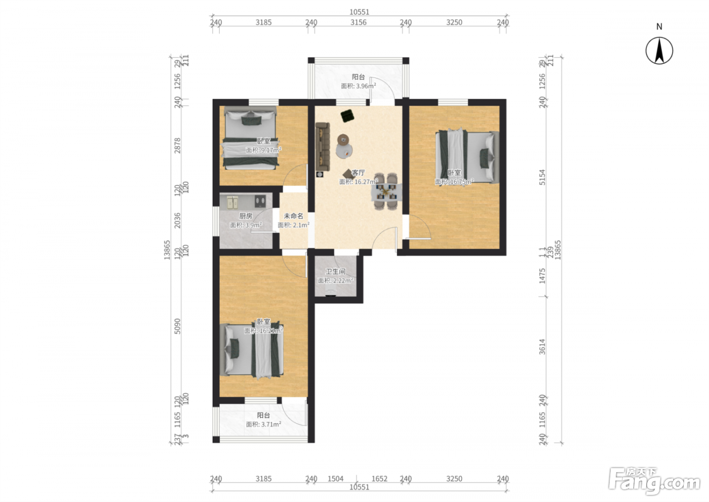 建设部大院 南北向 四居室 91.68平米 电梯