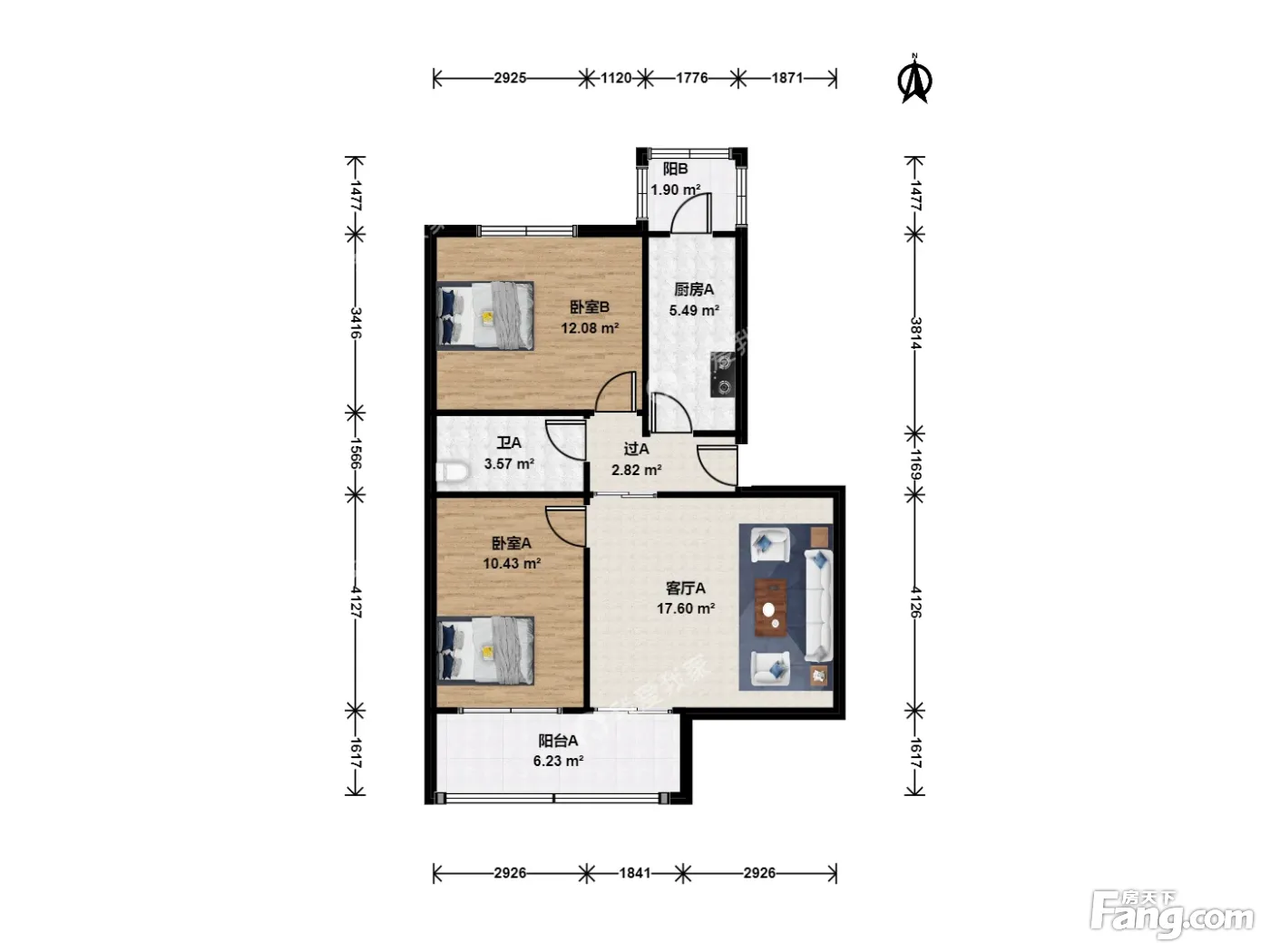 户型齐全,主打户型方正,明厨,主卧朝南二居