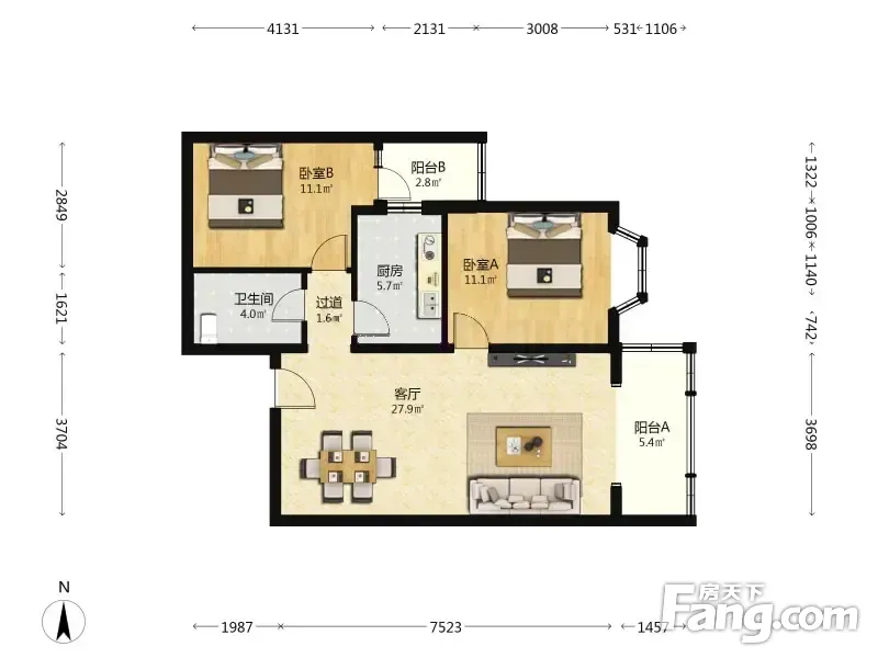 户型齐全,主打户型方正,双阳台,主卧朝南二居