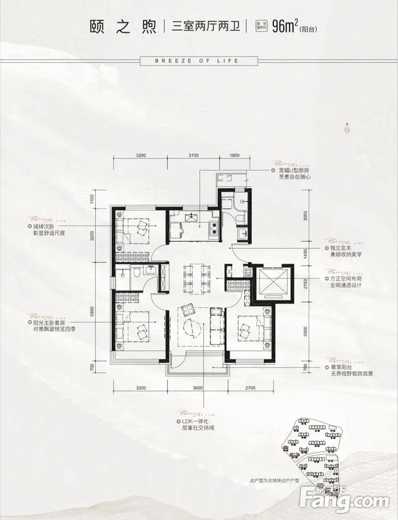 璟山和煦新春优惠 96平三居 568万 南北通透 精装修