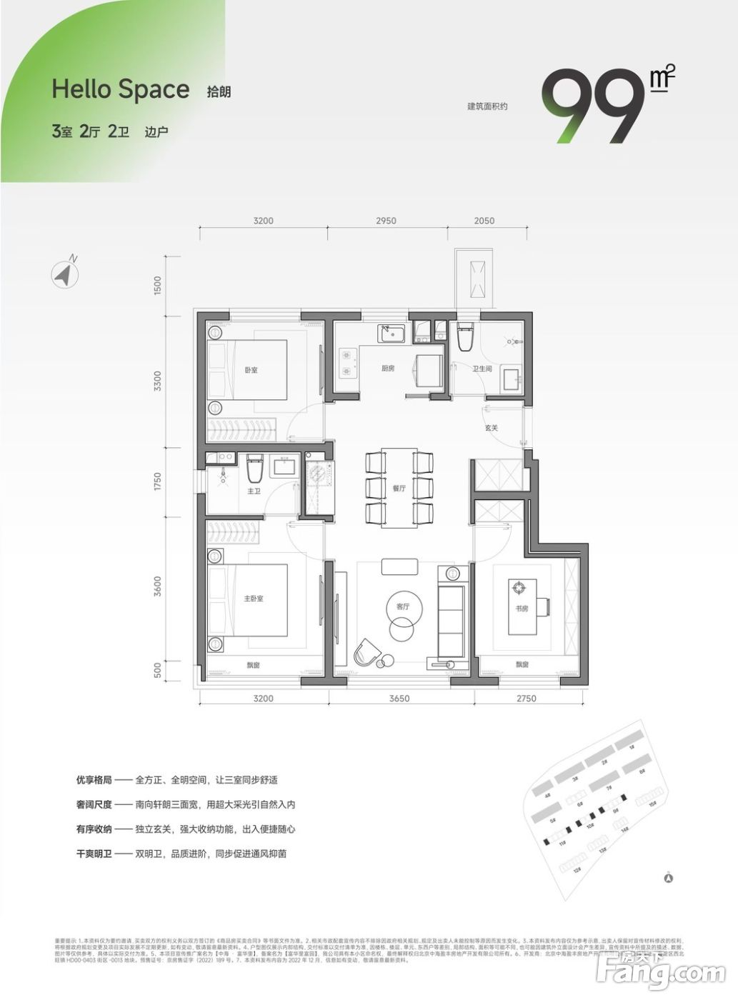 户型齐全,主打南北通透,客厅朝南三居