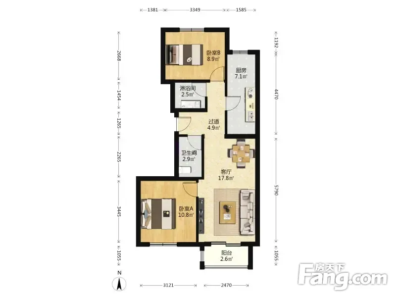 户型齐全,主打双阳台,主卧朝南二居