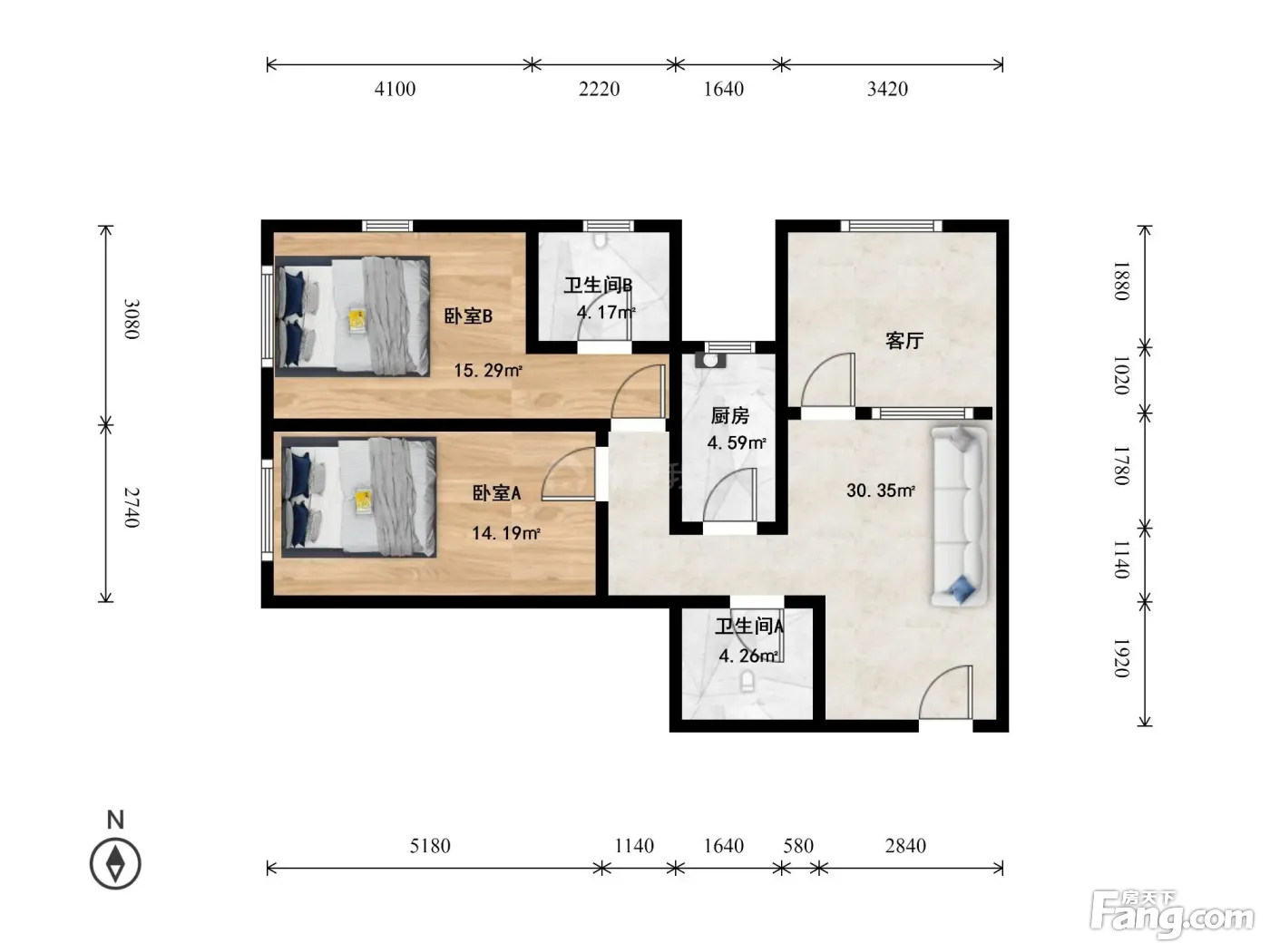 2室1厅2卫