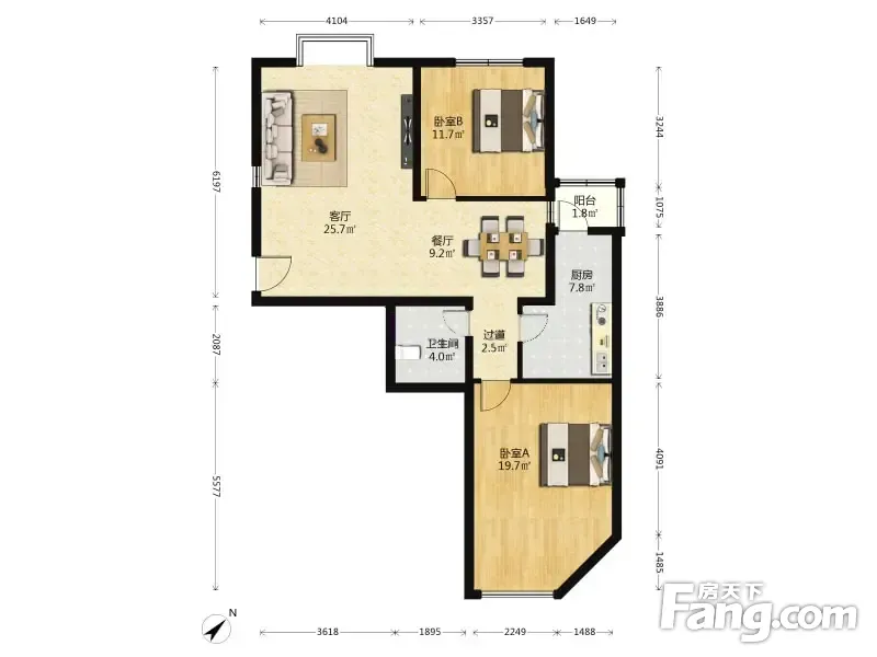珠江峰景 2室1厅 113.38平