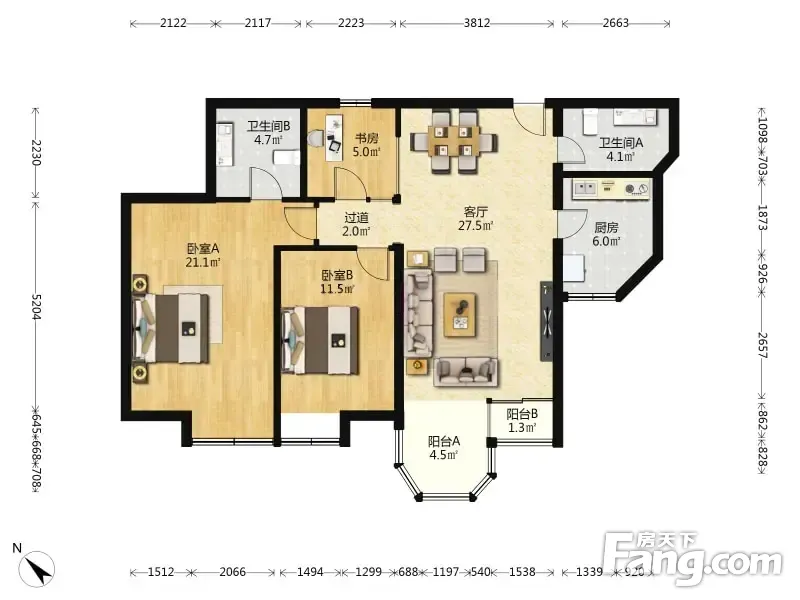珠江峰景 3室2厅 120.56平