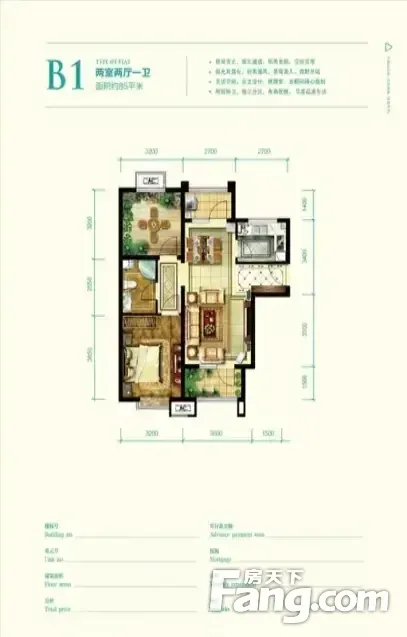 户型齐全,主打户型方正,明厨,客厅朝南,双卧朝南,主卧朝南二居
