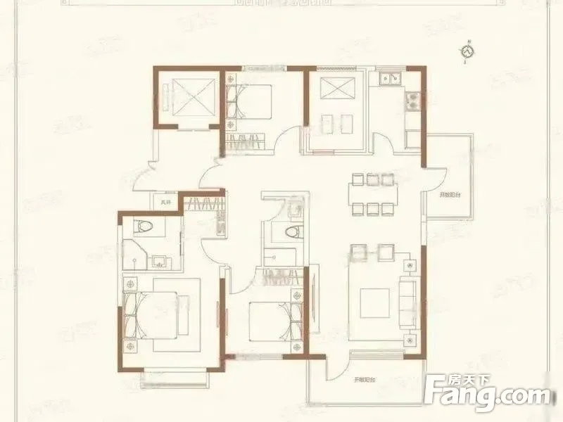 户型齐全,主打南北通透,客厅朝南,开放厨房三居