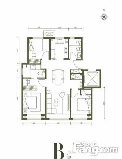 户型齐全,主打客厅朝南,主卧朝南三居