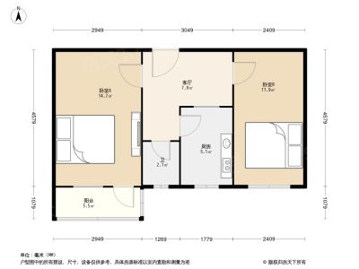 石景山区苹果园模式口东里2室1厅,户型通透,采光好