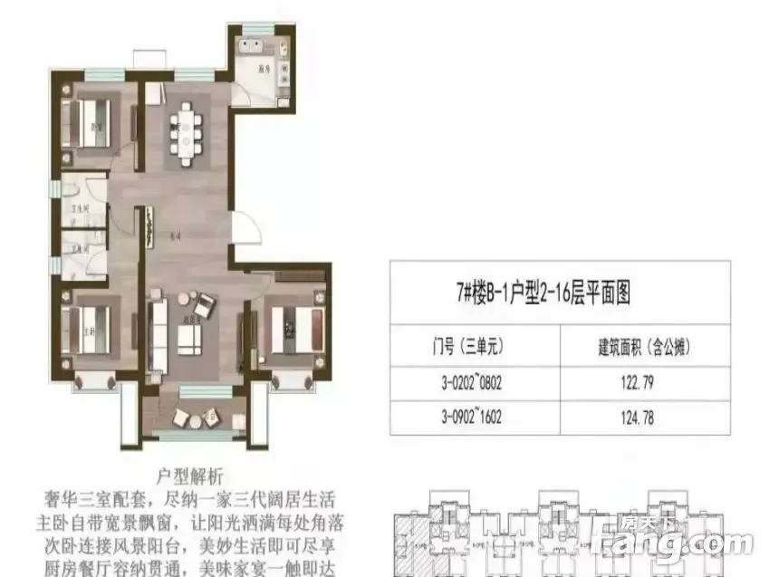 户型齐全,主打户型方正,明卫,明厨,客厅朝南,主卧朝南三居