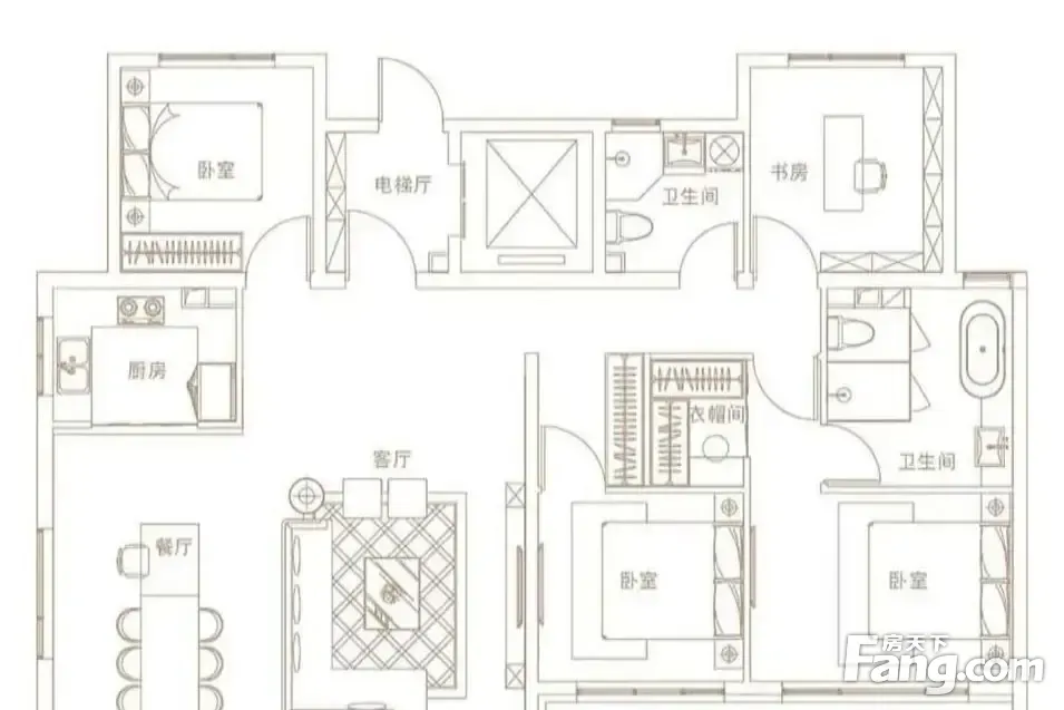 房屋拥有相对宽松的尺寸,布局通透,动静分离,设计豪华