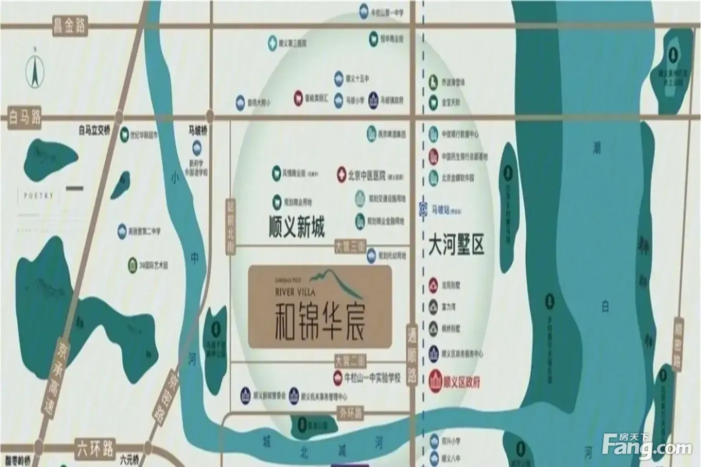 地铁15号线9站望京 顺义区政府 周边双河10大公园环绕 医院商场高端休闲场所环伺 纯熟墅区生活配套 社区容积率仅1.6