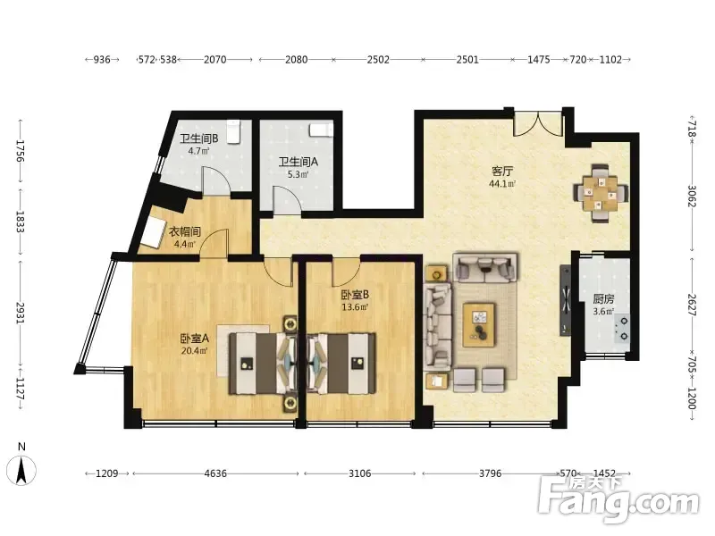 2室1厅2卫