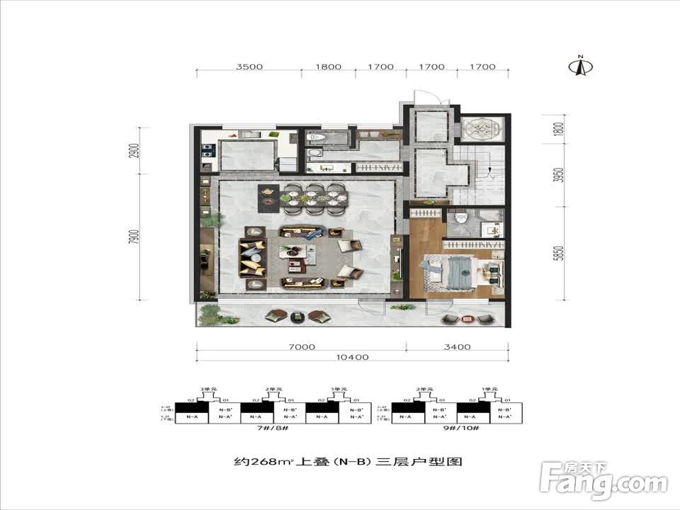 帅府·君园户型主要有221平-226平的南北通透,客厅朝南,主卧带卫,主卧套间的五居 、221平-268平的南北通透,客厅朝南的四居 。