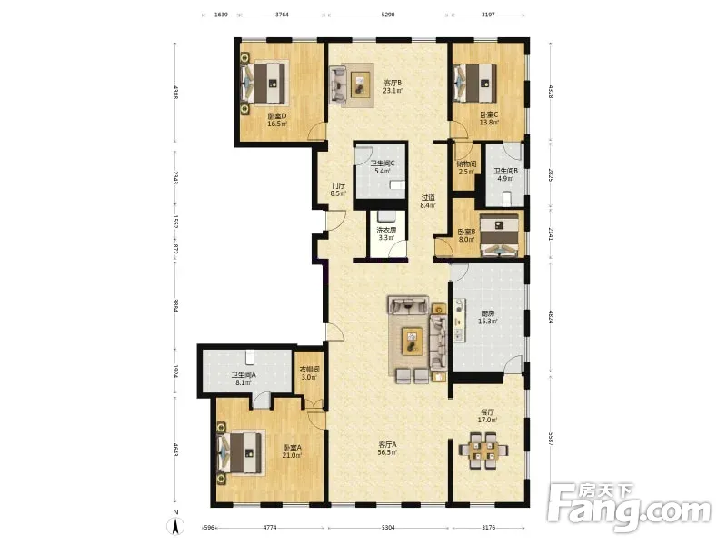 房屋拥有相对宽松的尺寸,布局通透,动静分离,设计豪华
