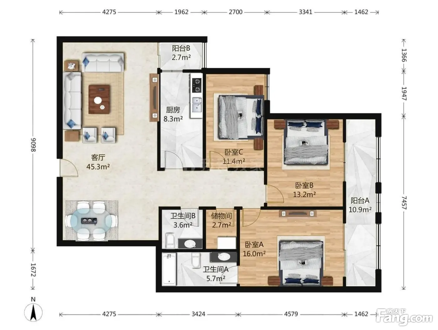 3室1厅2卫