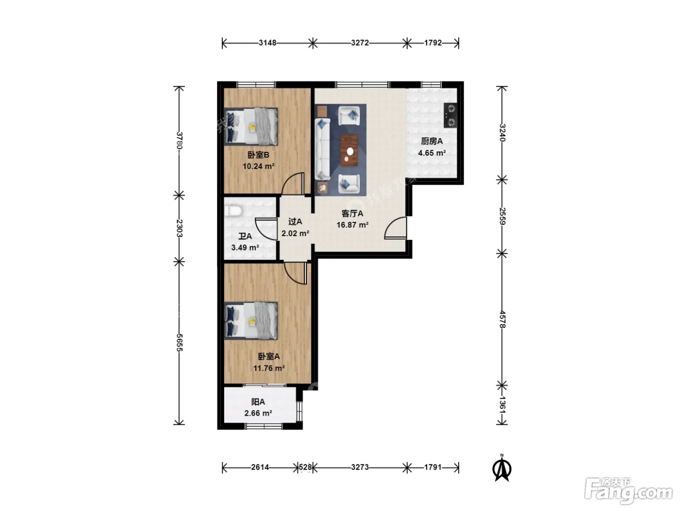 户型介绍:此房户型为2室1厅1卫,建筑面积为80.92平米,朝向为南北。