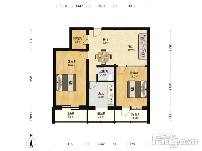 户型齐全,主打户型方正,明厨,主卧朝南二居