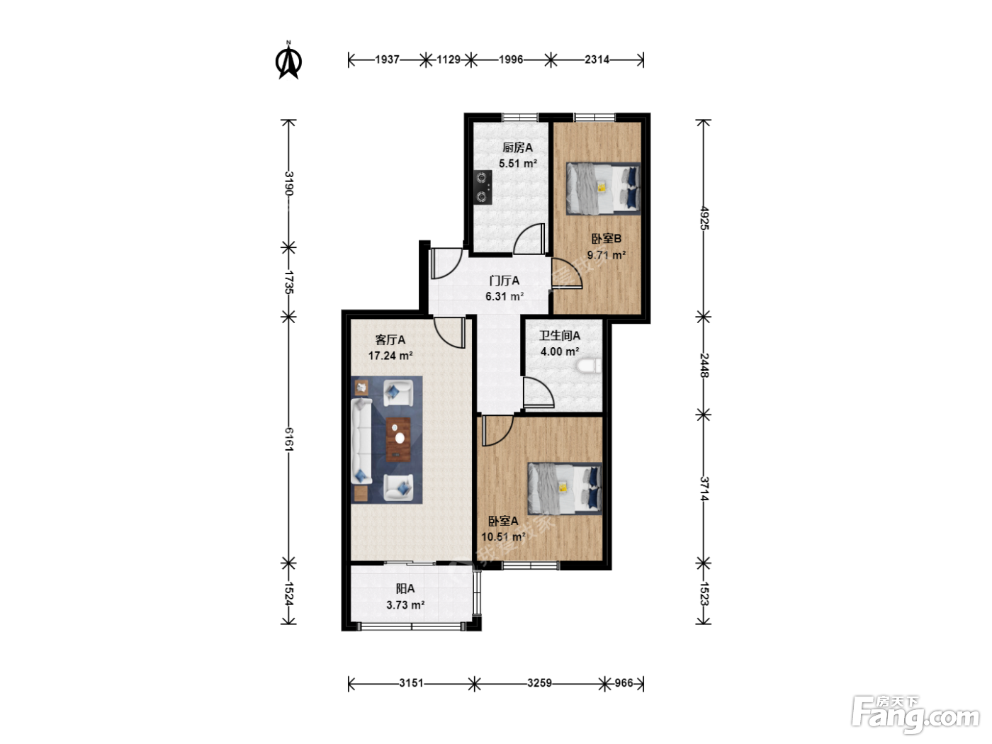 南沙滩大屯路2号院 南北向三居室 精装修