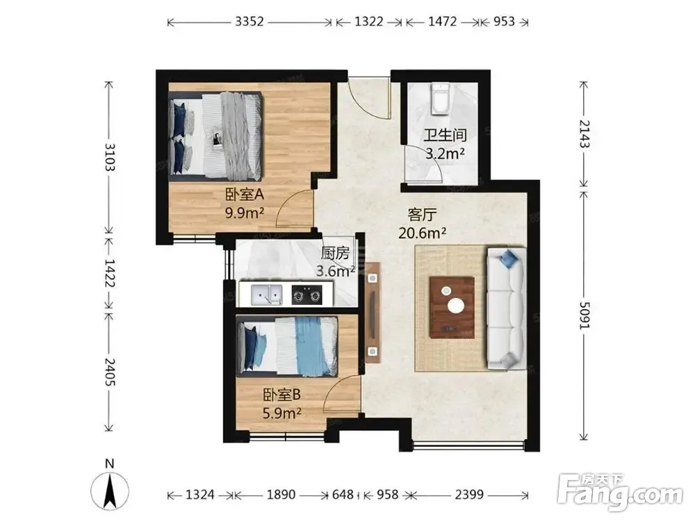 户型齐全,主打户型方正,明厨,客厅朝南二居