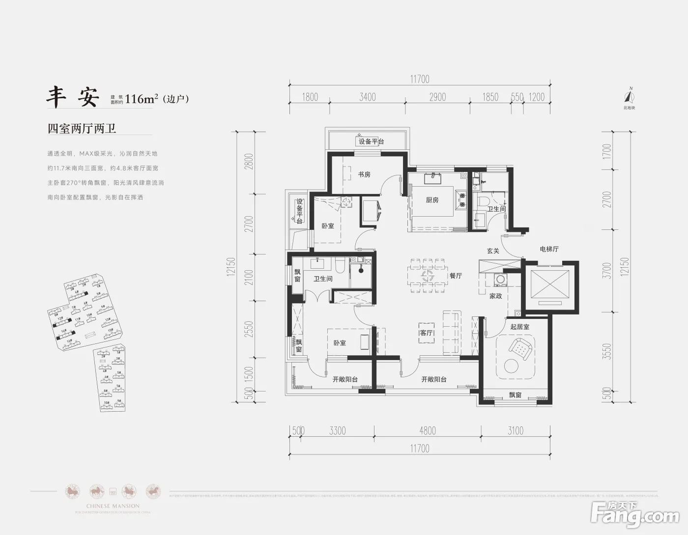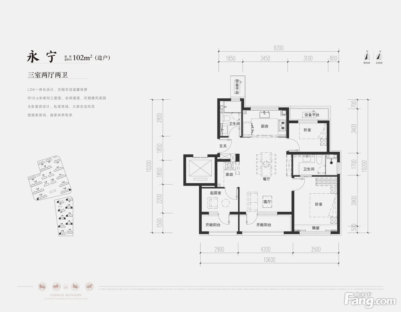 在售产品 户型名称 户型面积 居室 产品报价 朝向 剩余套数 永乐 102㎡ 三居 580万起 南北 剩余套数:309套 丰乐 116㎡ 四居 660万起 南北 剩余套数:138套 开明 125㎡ 四居 690万起 南北 剩余套数:80套 崇贤 166㎡ 四居 950万起 南北 剩余套数:60套 通济 90㎡ 三居 510万起 南北 剩余套数:138套