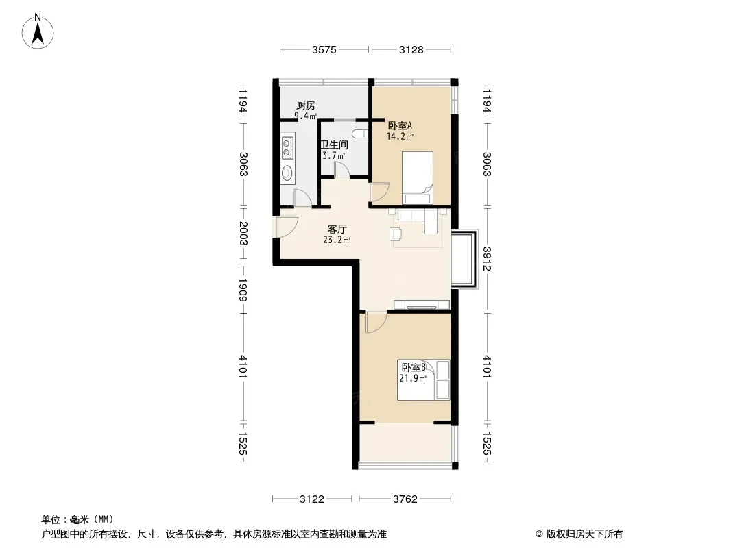 户型齐全,主打明厨,客厅朝南二居