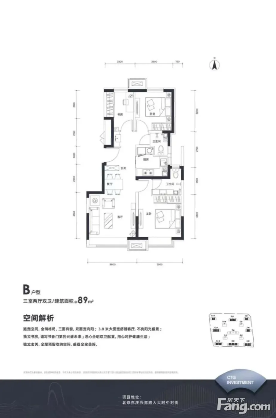 亦庄中旅亦府 南北通透 精装修三居室 小区中间位置 观景房
