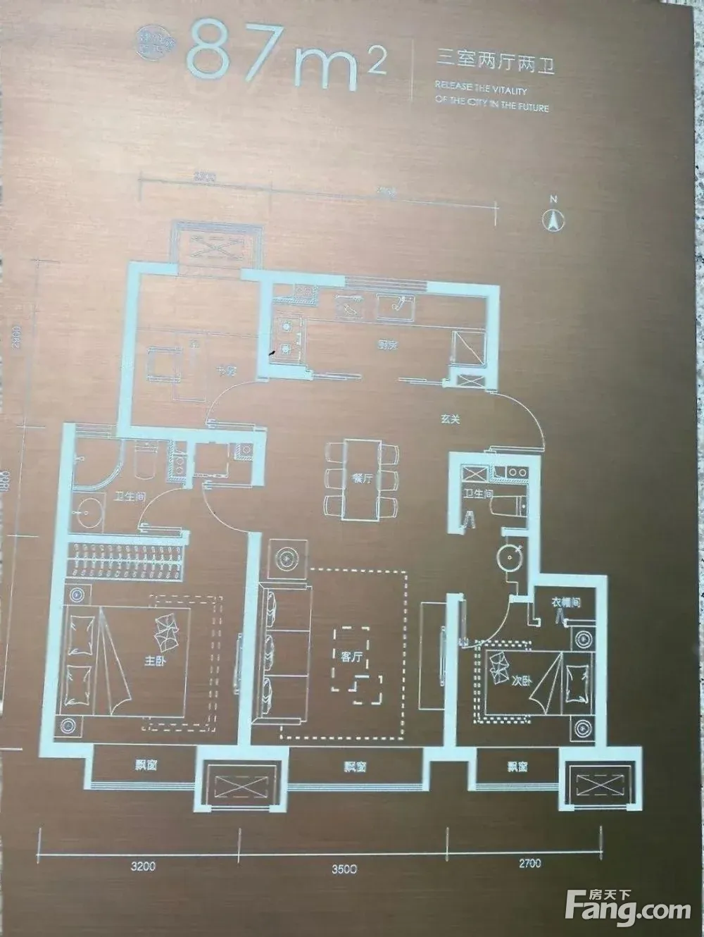 户型解读 89平三室两厅两卫,双眼睛户型,该户型南北的通透性很好,厨房和客户完全通透。另外入户做了一个玄关,既增强了私密性,又有效的利用了室内空间,使主卧多了一个衣帽间。房屋拥有相对宽松的尺寸,布局通透,动静分离,设计豪华