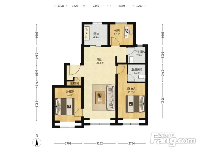 户型齐全,主打南北通透,全明格局三居