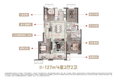 奢朗四居127平 全明通透,奢享主卧套房设计,自成一方私密天地 约10.5米南向三面宽,宽尺生活臻境打开 LDK设计,客餐厨一气呵成,规整格局 匠心独立收纳间设计,日常生活井井有条
