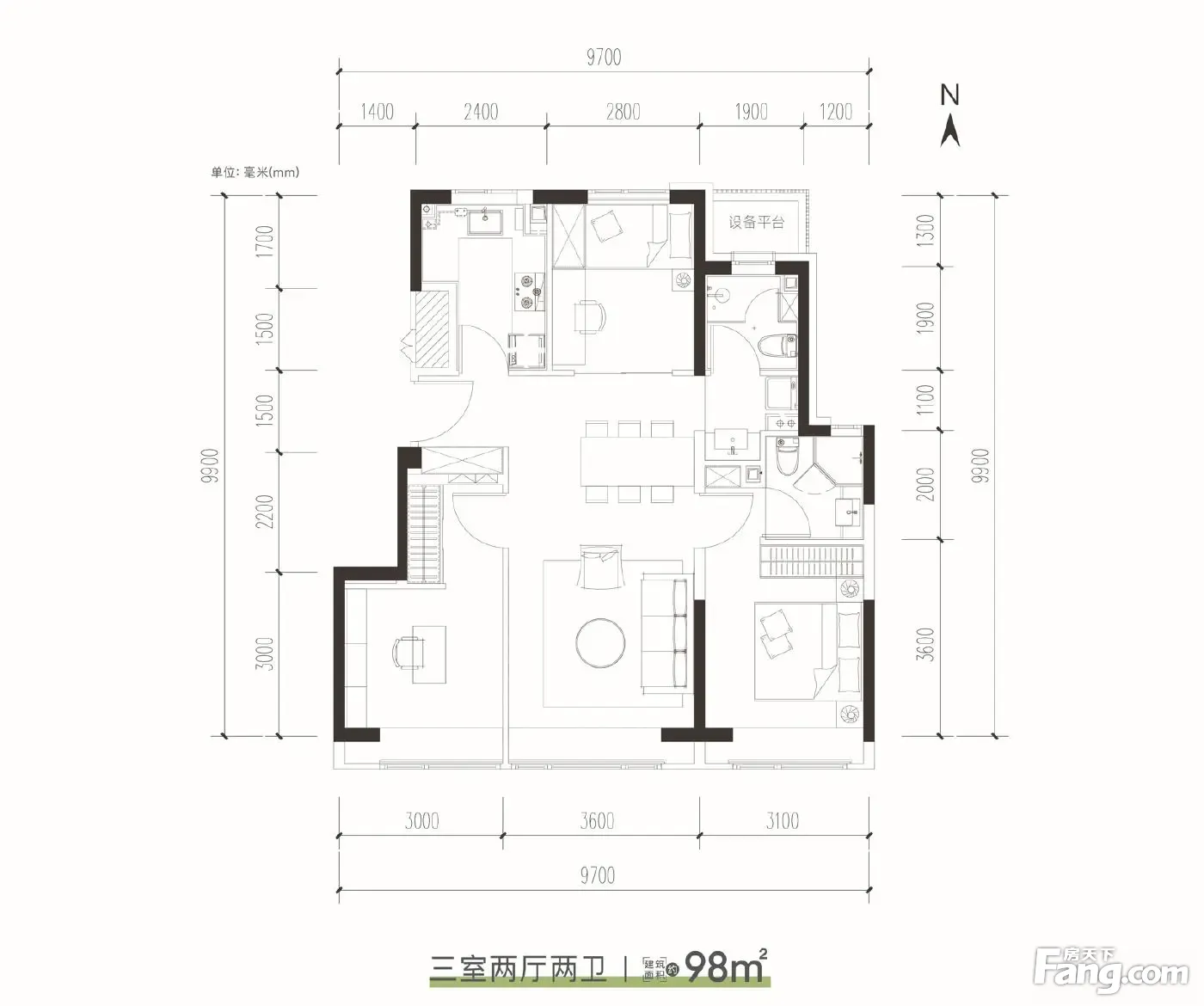 户型齐全,主打南北通透,客厅朝南三居