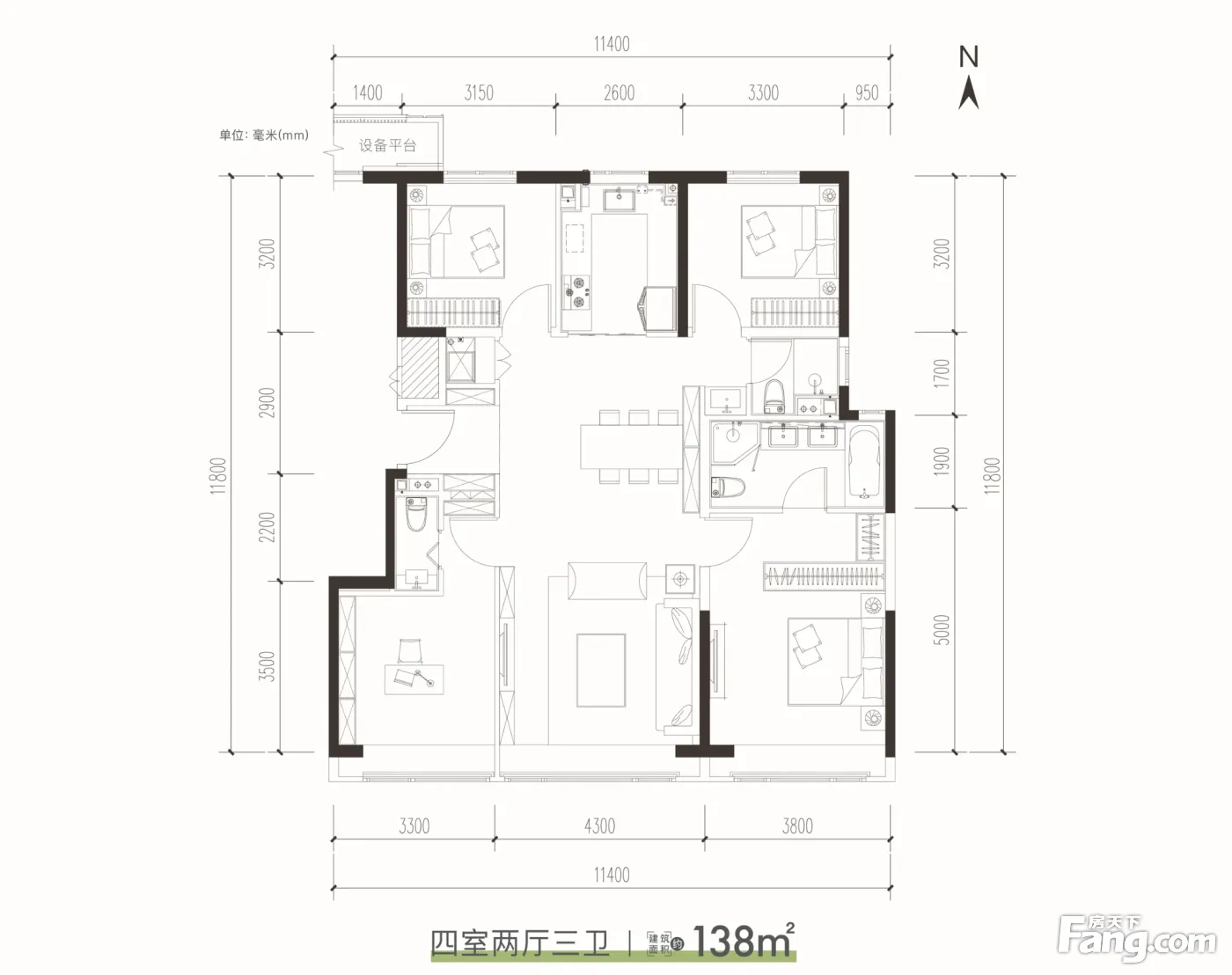 户型齐全,主打南北通透,客厅朝南三居