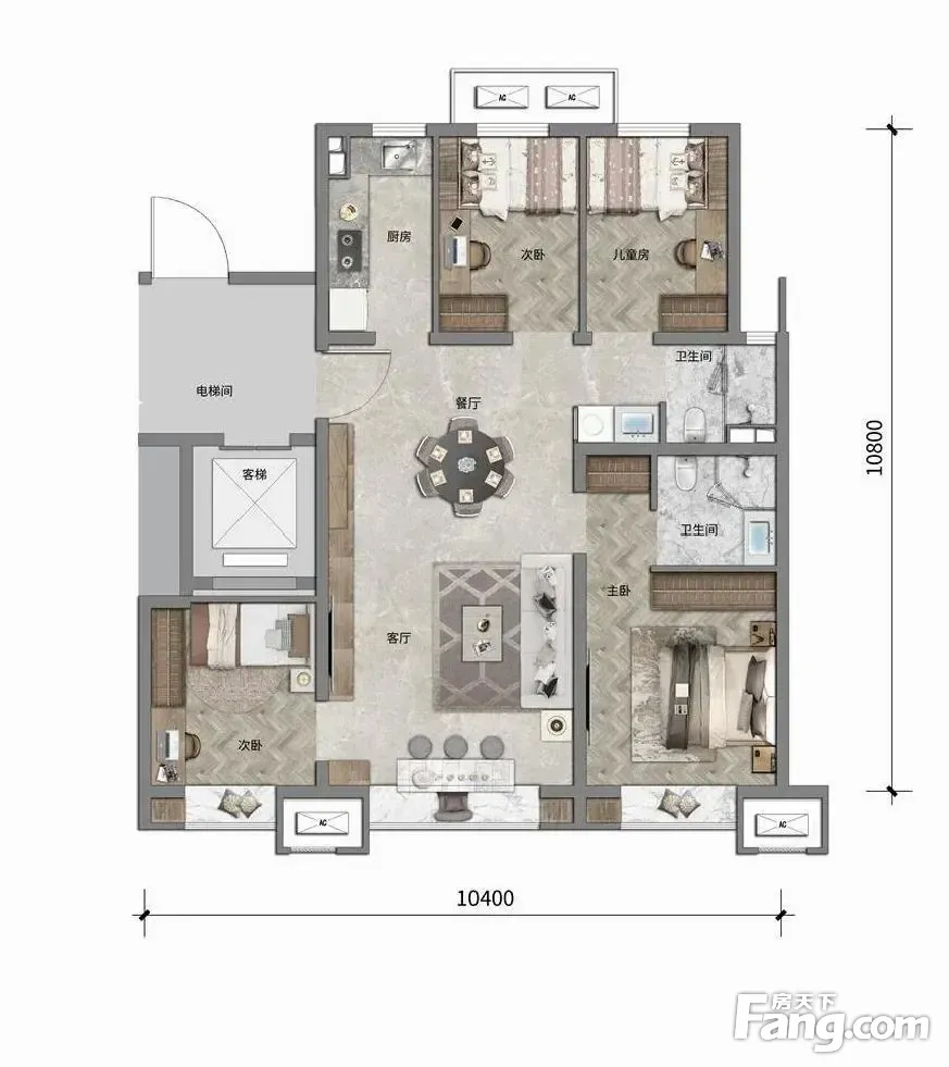 户型齐全,主打南北通透,客厅朝南四居