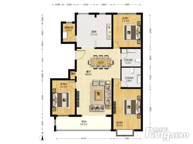 一品亦庄 3室2厅 168.77平