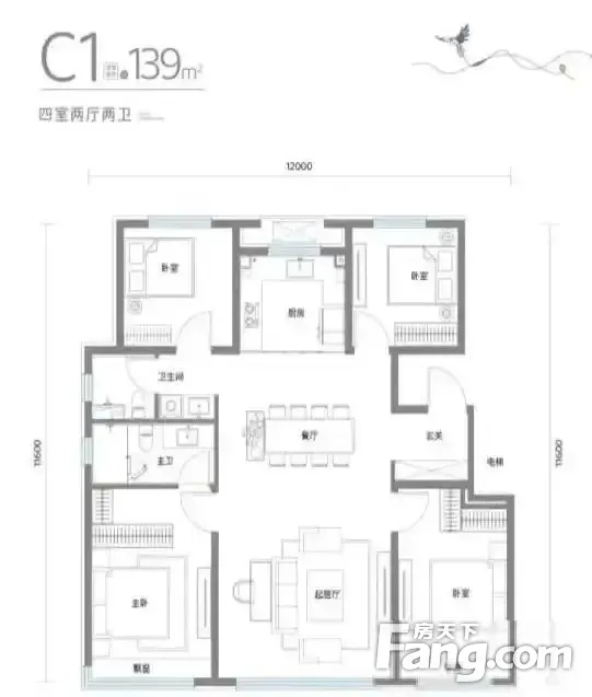 户型齐全,主打采光充足,南北通透,全明格局,户型方正四居