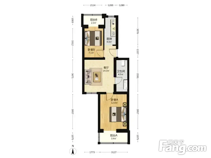 新安里 2室1厅 63.7平