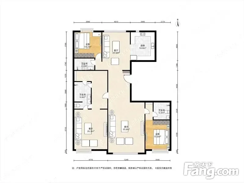 房屋拥有相对宽松的尺寸,布局通透,动静分离,设计豪华