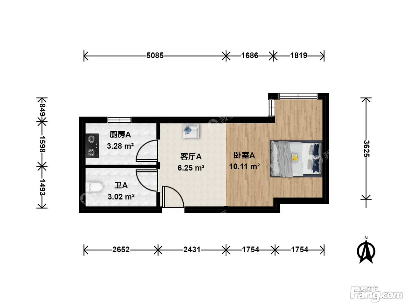 户型介绍:此房户型为1室1厅1卫,建筑面积为32.84平米,朝向为北。
