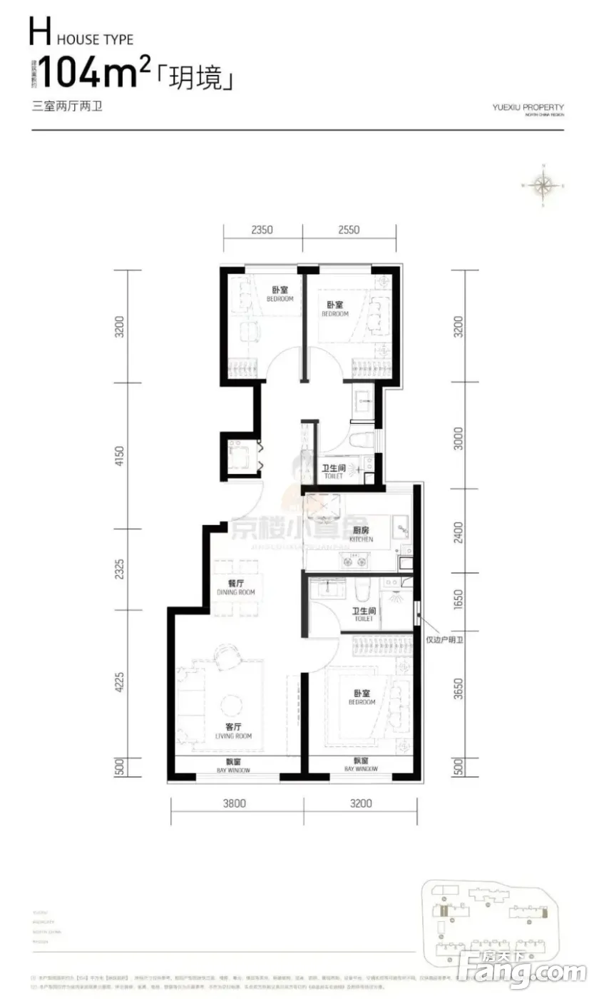 户型齐全,主打主卧套间,U型厨房,干湿分离三居