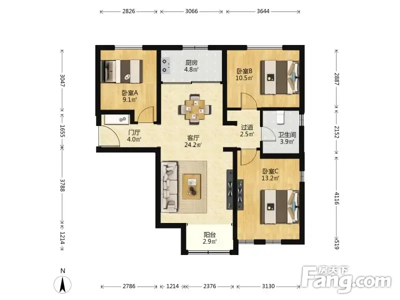 朗润园二期 3室1厅 107.56平