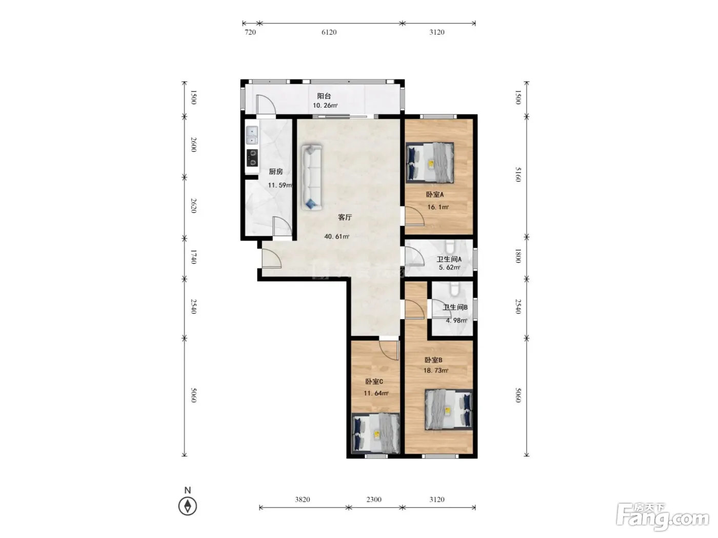3室1厅2卫