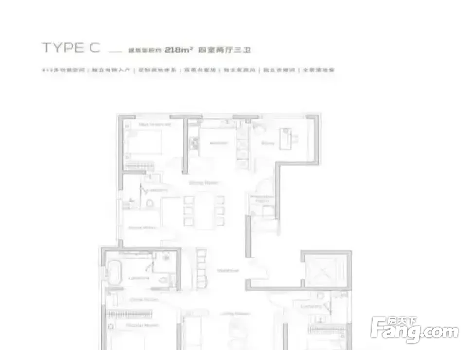 合生开发,341.36平精装平层,总价2398万,精装交付