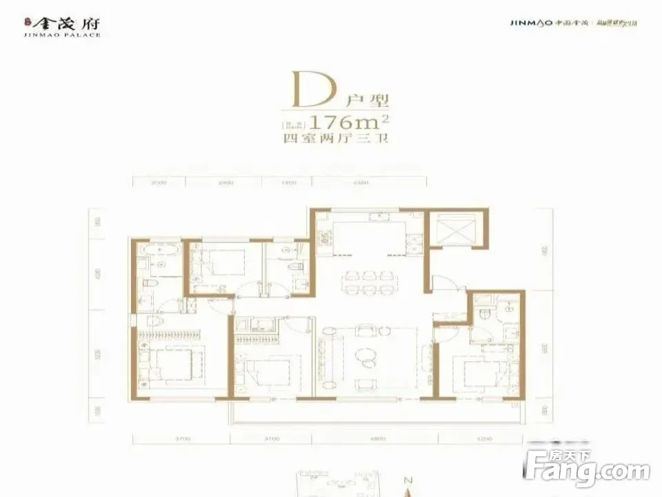 永定金茂府户型主要有155平-176平的户型方正,客厅朝南的四居 、130平-130平的户型方正,客厅朝南的三居 。