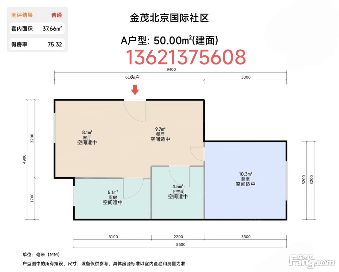 *获取完整户型报告,同时会有免费语音讲解服务