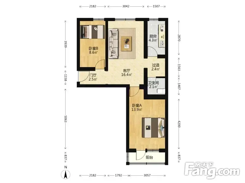 海子角南里 2室1厅 73.22平