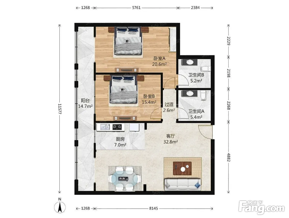 2室1厅2卫