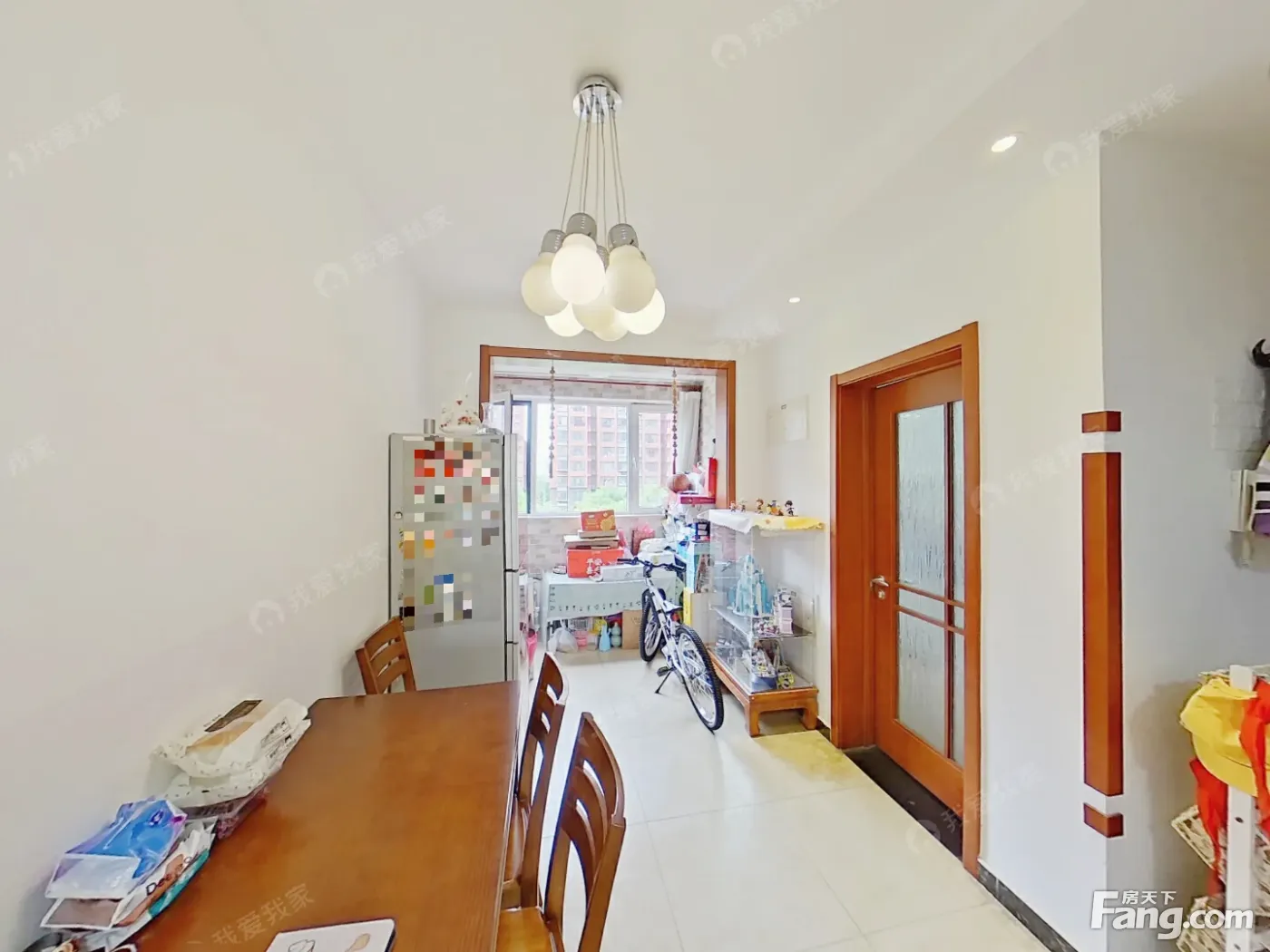 户型介绍:房子是南北向两居室,客厅朝南带落地阳台,两个卧室朝南带飘窗,卫生间不带窗户,餐厅带窗户,客厅非常明亮,高楼层,视野开阔,采光。
