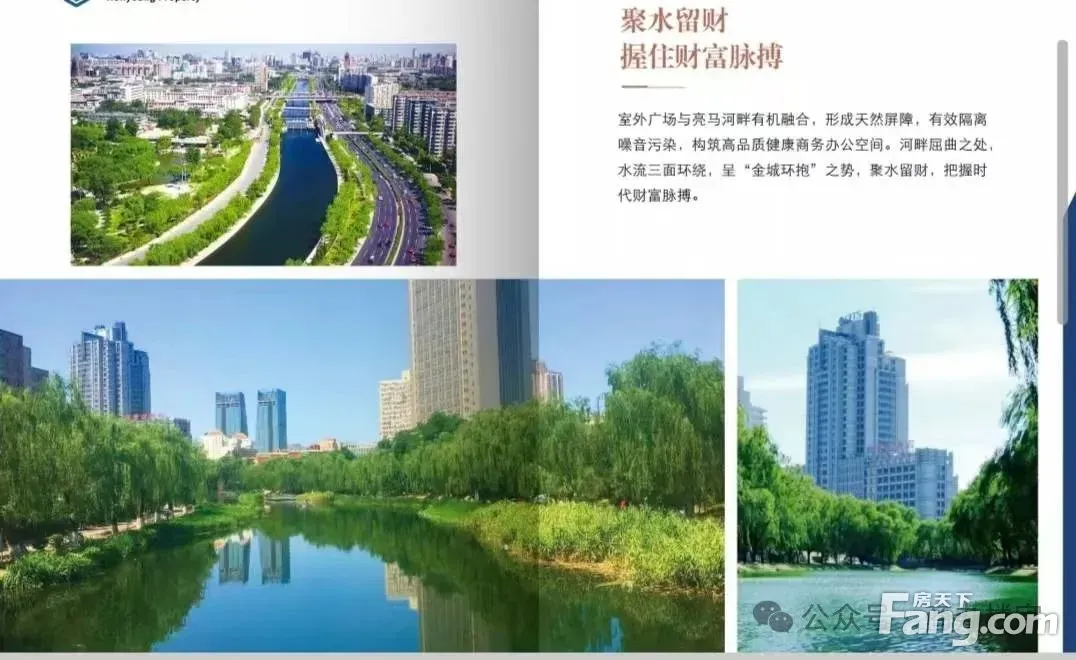 保障出行便捷具备地上、地下停车条件,车位充足。地下设有双向进出车道、立体人车分流环线,充分提升停车效率与人车安全性! 项目车位情况 聚水留财握住财富脉搏室外广场与亮马河畔有机融合,形成天然屏障,有效噪音污染,构筑高品质健康商务办公空间。河畔屈曲之处,水流三面环,呈“金城环抱”之势,聚水留财,把握时代财富脉搏!