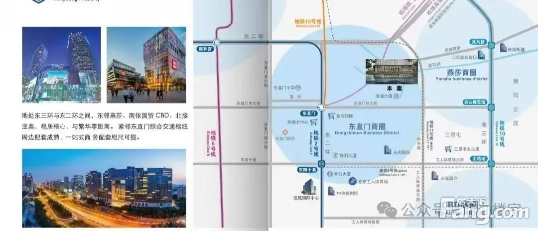 作为成热产业金础功能区,东二环商方区1传承1传统义化、能汇现代友展,形成特色商务氛围。东直门商圈位踞东二环核心,逐步承接CBD优势有效连接燕莎、崇文门、国贸乃至中关村等商圈,且区域内可售商务楼宇资源浠缺,便捷商务生活,触手可达! 项目外观 项目简介: 正东国际大厦地处东直门商圈、燕莎商圈与第二使馆区交汇处,周边央企国企、外商资源聚集,商务氛围浓厚。项目通过品质空间、天然生态便利交通、丰富配套,打造北京核心商圈内适于企业总部自用且极具质感的特色精品办公场所!